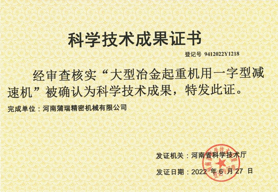 在当今世界范围内,经济的竞争愈来愈表现为科学技术的竞争,科技成果转化数量、质量和速度的竞争。面对如此复杂多变的市场环境,蒲瑞公司蓄能发力,通过各项科技成果评价审核,具有技术先进性的产品“新型球铰卷筒联轴器”和“大型冶金起重机用一字型减速机”被成功认定为科学技术成果,为蒲瑞科技成果成功转化再添新彩。